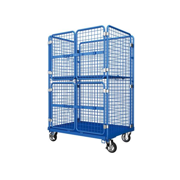 Foldable Industrial Rolling Logistics Cart Warehouse Cage Trolley With 4 Wheels